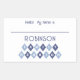 Accueillez vos proches lors de votre réunion de famille avec cet autocollant amusant personnalisable nom tag mot art design avec des formes géométriques assorties liées ensemble. L'avant de la carte incorpore ce style de design avec chaque forme contenant une lettre pour expliquer la RÉUNION FAMILIALE en majuscules. Il y a un modèle pour le nom de famille et un espace où chaque personne peut écrire son nom. Comme nous l'avons vu, les formes alternent avec deux teintes tendance de lumière et de bleu foncé, mais TOUTES les couleurs de ce design peuvent être customisées, y compris la couleur arrière - plan, les formes géométriques, ET la couleur du texte à l'intérieur, ce design est parfait pour tout choix de couleurs qui représentent la personnalité de votre famille ! Veuillez utiliser la fonction de message Zazzle pour me contacter si vous avez des questions.