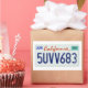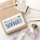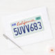 Plaque d'immatriculation californienne 2007. Codes hexadécimaux : numéros bleus 0D1E6E, rouge DE2507, autocollant vert 58C1B3.