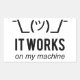 Combien de fois avez-vous dit ceci une fois confrontés avec une bogue ? Au lieu de se répéter inutilement, pourquoi ne pas utiliser une chemise avec votre excuse préférée et ne pas apprécier les réactions ? Une conception montrant l'émoticône d'unicode pour gesticuler, un meme infâme utilisé dans la technologie et programmant les communautés relatives, ainsi que la déclaration "cela fonctionne sur ma machine". L'autocollant idéal pour un ordinateur portable de programmeur.