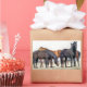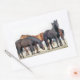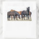 Un dessin photographique d'un troupeau de chevaux qui attendent d'être nourris.