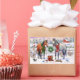 Une scène de Noël hivernale avec des chevaux dans la neige.