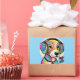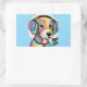 Cet autocollant de bande dessinée coloré et vibrant comporte un mignon chiot portant un casque. La fourrure du chiot est un mélange de couleurs vives et de motif, ce qui lui donne une ambiance super et rétro. L'autocollant est parfait pour ajouter une touche de personnalité et de plaisir à vos effets personnels ou partager avec un amoureux des chiens.