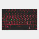 Clavier d'ordinateur rouge avec lettres Linux vert.