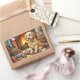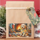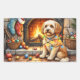 Sticker Rectangulaire Cockapoo Sitting by Fireplace with Christmas Light