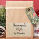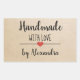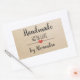 Autocollant moderne "fait main avec amour" avec une police noire sur un arrière - plan en carton agrémenté d'un coeur rouge mignon. Customiser du texte.