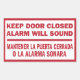 Garder Porte fermée Signal de prudence en anglais et en espagnol : GARDER PORTE FERMÉE ALARME SERA SOUND; MANTENER LA PUERTA CERRADA O LA ALARMA SONARA en gras rouge sur arrière - plan blanc pour attirer l'attention.