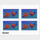 Sticker Rectangulaire Coq et poules arc-en-ciel, bleu électrique