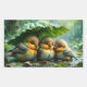 cute fluffy birds cuddling together in the rain under cover of a leaf