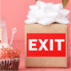 Un autocollant conçu pour indiquer où se trouve la sortie.
