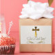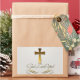 Dieu vous aime avec une croix de couleurs et de lettres dorées.