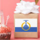 Sticker avec un design avec le drapeau d'Orlando, Floride. Un drapeau bleu et blanc avec la fontaine du lac Eola dans le centre Drapeau design par la Ville d'Orlando et Tim Eggert. Source : https://www.orlando.gov/Our-Government/News-and-Information/City-Official-Assets