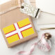 Sticker avec design avec un drapeau du comté historique de Dorset, en Angleterre, Grande-Bretagne; drapeau jaune avec une croix blanche avec une frontière rouge