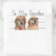 Ces autocollants comportent une photo de deux chiens de repérage dorés souriants qui portent des lunettes nerd et cravates. L'arrière - plan est une feuille de papier feuilleté avec les mots "To My Teacher" écrits en écriture cursive.