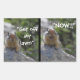 Un écureuil terrestre à l'air drôle avec le slogan du mème internet "Descendez de ma pelouse" sur des autocollants rectangle.