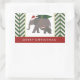 Sticker Rectangulaire Eléphants de Noël avec Casquettes, Arbre et Chevro