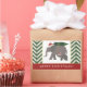 Ces éléphants de Noël branchés et mignons, un parent et un petit éléphant, rentrent chez eux avec leur arbre de Noël parfait. Les deux sont totalement dans l'esprit de vacances avec chapeaux de Père Noël assortis! Le reste de la décoration est composé d'un chevron vert et d'un rectangle rouge en bas. Des lignes épurées de papier doré ornent les bords. (Veuillez noter que l'article ne contiendra pas de feuille d'or réelle, juste son apparence.) Le bas du dessin dit "Joyeux Noël", mais vous pouvez facilement changer le message en utilisant le modèle.