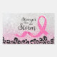 Citation inspirante conscience du cancer du sein plus forte que la tempête avec ruban rose et empreinte de léopard noir.