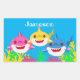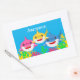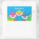 Sticker Rectangulaire Enfants requin jaune et famille fête d'anniversair