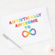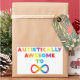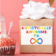 Design fait avec amour pour la Sensibilisation sur l'autisme. Les lettres arc-en-ciel forment l'expression "Autistiquement Awesome To Infinity" avec un symbole infinity.