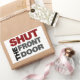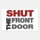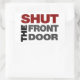 Tais-toi ! Ferme ta bouche ! Ferme-toi le visage !... tout ça serait grossier, alors dis-le aussi bien que possible avec ce drôle T-shirt Fermer la porte avant. Gros, gras, dans vos lettres de bloc de visage en rouge profond, gris et noir, formaté en forme de carré pour faire passer le message à travers fort et clair.