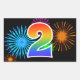 Sticker Rectangulaire Feu d'artifice amusant + motif arc-en-ciel "2" Num