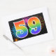 Cette conception d'autocollant amusante et vibrante présente un motif coloré inspiré de feux d'artifice de célébration, ainsi que le nombre "59" avec un motif de dégradé inspiré d'un arc-en-ciel multicolore, sur un fond de couleur noire. Des autocollants comme celui-ci peuvent être offerts en petit cadeau lors de la célébration du cinquante-neuvième anniversaire de quelqu'un, ou peut-être pour un cinquante-neuvième anniversaire de mariage de couple, ou un autre événement 59ème.