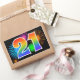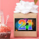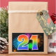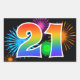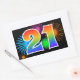 Cette conception d'autocollant amusante et vibrante présente un motif coloré inspiré de feux d'artifice de célébration, ainsi que le nombre "21" ayant un motif de dégradé multicolore semblable à un arc-en-ciel, sur un fond de couleur noire. Des autocollants comme celui-ci pourraient peut-être être offerts en cadeau lors de la célébration du vingt-et-unième anniversaire de quelqu'un, ou peut-être pour les vingt-et-un ans de mariage d'un couple, ou pour un autre événement lié au 21.