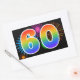 Ce design de stickers amusant et vibrant présente un motif coloré inspiré de feux d'artifice de célébration, ainsi que le nombre "60" ayant un motif de dégradé multicolore semblable à un arc-en-ciel, sur un fond de couleur noire. Des stickers comme celui-ci pourraient être utilisés lors d'une fête célébrant le soixantième anniversaire de quelqu'un, ou peut-être pour un soixantième anniversaire de mariage de couple, ou un autre événement marquant les 60 ans.