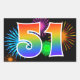 Cette conception d'autocollant amusante et vibrante présente un motif coloré inspiré de feux d'artifice de célébration, ainsi que le nombre "51" ayant un motif de dégradé multicolore comme un arc-en-ciel, sur un fond de couleur noire. Des autocollants comme celui-ci pourraient peut-être être utilisés lors d'une fête célébrant le cinquante-et-unième anniversaire de quelqu'un, ou peut-être pour le cinquante-et-unième anniversaire de mariage d'un couple, ou un autre événement 51ème. [~Z0000324]