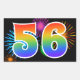Ce design d'autocollant amusant et vibrant présente un motif coloré de feux d'artifice de célébration, ainsi que le nombre "56" avec un motif de dégradé inspiré d'un arc-en-ciel multicolore, sur un fond de couleur noire. Des autocollants comme celui-ci pourraient peut-être être offerts en petit cadeau lors de la célébration du cinquante-sixième anniversaire de quelqu'un, ou peut-être pour un cinquante-sixième anniversaire de mariage de couple, ou un autre événement 56. [~Z0000324]