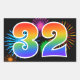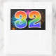 Ce design d'autocollant amusant et vibrant présente un motif coloré de feux d'artifice de célébration, ainsi que le nombre "32" avec un motif de dégradé arc-en-ciel multicolore, sur un fond de couleur noire. Des autocollants comme celui-ci peuvent être offerts en petit cadeau lors de la célébration du trente-deuxième anniversaire de quelqu'un, ou peut-être pour le trente-deuxième anniversaire de mariage d'un couple, ou pour un autre événement lié au 32. [~Z0000324]