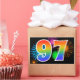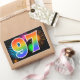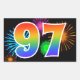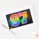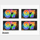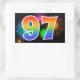 Cette conception d'autocollant amusante et vibrante présente un motif coloré de feux d'artifice de célébration, ainsi que le nombre "97" ayant un motif de dégradé multicolore comme un arc-en-ciel, sur un fond de couleur noire. Des autocollants comme celui-ci pourraient être offerts en petit cadeau lors de la célébration du quatre-vingt-dix-septième anniversaire de quelqu'un, ou peut-être pour un quatre-vingt-dix-septième anniversaire de mariage de couple, ou un autre événement 97.