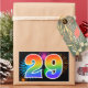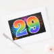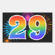 Cette conception d'autocollant amusante et vibrante présente un motif coloré inspiré de feux d'artifice de célébration, ainsi que le nombre "29" avec un motif de dégradé inspiré d'un arc-en-ciel multicolore, sur un fond de couleur noire. Des autocollants comme celui-ci pourraient être utilisés lors d'une fête célébrant le vingt-neuvième anniversaire de quelqu'un, ou peut-être pour le vingt-neuvième anniversaire de mariage d'un couple, ou pour un autre événement marquant le 29ème anniversaire. [~Z0000324]