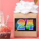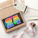 Ce design d'autocollant amusant et vibrant présente un motif coloré de feux d'artifice de célébration, ainsi que le nombre "24" avec un motif de dégradé inspiré d'un arc-en-ciel multicolore, sur un fond noir. Des autocollants comme celui-ci pourraient être utilisés lors d'une fête célébrant le vingt-quatrième anniversaire de quelqu'un, ou peut-être pour le vingt-quatrième anniversaire de mariage d'un couple, ou pour un autre événement marquant le 24. [~Z0000324]