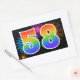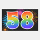 Ce design d'autocollant amusant et vibrant présente un motif coloré de feux d'artifice de célébration, ainsi que le nombre "58" ayant un motif de dégradé multicolore inspiré de l'arc-en-ciel, sur un fond de couleur noire. Des autocollants comme celui-ci pourraient être utilisés lors d'une fête célébrant le cinquante-huitième anniversaire de quelqu'un, ou peut-être pour le cinquante-huitième anniversaire de mariage d'un couple, ou pour un autre événement 58ème. [~Z0000324]