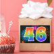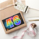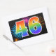 Ce design d'autocollant amusant et vibrant présente un motif coloré inspiré de feux d'artifice de célébration, ainsi que le nombre "46" avec un motif de dégradé inspiré d'un arc-en-ciel multicolore, sur un fond noir. Des autocollants comme celui-ci pourraient être utilisés lors d'une fête célébrant le quarante-sixième anniversaire de quelqu'un, ou peut-être pour le quarante-sixième anniversaire de mariage d'un couple, ou un autre événement marquant le 46ème anniversaire.