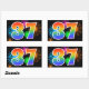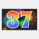 Ce design d'autocollant amusant et vibrant présente un motif coloré de feux d'artifice de célébration, ainsi que le nombre "37" avec un motif de dégradé inspiré d'un arc-en-ciel multicolore, sur un fond de couleur noire. Des autocollants comme celui-ci pourraient être utilisés lors d'une fête célébrant le trente-septième anniversaire de quelqu'un, ou peut-être pour le trente-septième anniversaire de mariage d'un couple, ou un autre événement 37.