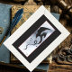 Dragon tribal noir avec fond bleu gris avec de petites fleurs rouges et une bordure rouge