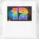 Sticker Rectangulaire Fun Fireworks + Rainbow Motif "12" Numéro d'événem