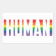 Célébrons l'égalité des sexes, nous sommes tous des êtres humains. Drapeau arc-en-ciel coloré avec humain en lettres majuscules blanches en gras de bout en bout.