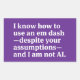 Sticker Rectangulaire I Know How to Use an Em Dash