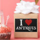 I Love (Heart) Antiques. L'accessoire amusant est un grand cadeau d'amoureux d'antiquité pour un homme ou une femme qui aime collectionner, prospérer, antiquité et chasse pour antiquités & objets de collection à une vente de garage, vente de cour, vente de propriété, marché aux puces, magasin d'économie ou magasin d'antiquités. Si vous êtes un chasseur et collectionneur d'antiquités, et que votre passe-temps est de trouver et de faire des achats pour meubles anciens, bijoux, art et autres objets vintages, ce design est pour vous!