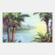 Domaine public art vintage d'une île avec palmiers, fleurs, océan et lever du soleil ou coucher du soleil à partir d'un conte biblique pour enfants.