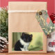 Stickers avec un chaton tuxedo chéri ! Ce chaton noir et blanc pose à couteaux verts et rouges. Un cadeau merveilleux pour les amoureux de les chats et les amateurs d'art victorien !