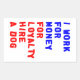 I Work For Money For Loyalty Hire A Dog. Globe Trotters specialises in idiosyncratic imagery from around the globe. Here you veut des Greeting Cards, Postcards, Posters, Mousepads and more.