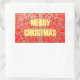 Sticker Rectangulaire Joyeux Noël Golden Red Parties scintillant Hearts