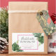 Collez ces autocollants amusants sur une boîte remplie de bonnes choses pour la récupération de la gueule de bois pour le week-end de l'EVJF. Autocollant Kit de Survie pour EVJF avec des feuilles tropicales. Personnalisez avec le nom de la mariée et le hashtag.