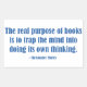 Christopher Morley écrit : "Le véritable but des livres est de piéger l'esprit dans sa propre pensée." Nous avons rendu cette citation dans une teinte bleu vif, et l'avons emblazée sur une variété de produits pour que vous puissiez la partager avec d'autres. Ressourcez le piège sur un esprit nouveau, et allumez une nouvelle pensée avec un livre aujourd'hui!