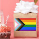 Autocollants / Scellés pour enveloppes : le drapeau arc-en-ciel et sa variante "Progrès" ajoutent un chevron le long de la hampe avec des bandes noire, marron, bleu clair, rose et blanche pour mettre en avant ces communautés (personnes de couleur marginalisées, individus trans et personnes vivant avec le VIH/sida et celles qui ont disparu) ; "la flèche pointe vers la droite pour montrer une avancée, tandis que sa position le long du bord gauche indique que des progrès restent à faire.