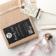 Customisez ces minimalistes noirs "Livraison Logo QR Code Merci Black Box Seal Étiquettes" pour l'emballage d'entreprise, avec un logo de société blanche, le message "Merci pour votre commande" dans une typographie ligature moderne, votre message personnalisé, QR Code, et les poignées de médias sociaux (Instagram, Facebook). Les autocollants sont destinés à passer verticalement sur le couvercle de la boîte d'emballage. Veuillez contacter le concepteur du magasin pour plus de personnalisation si nécessaire.